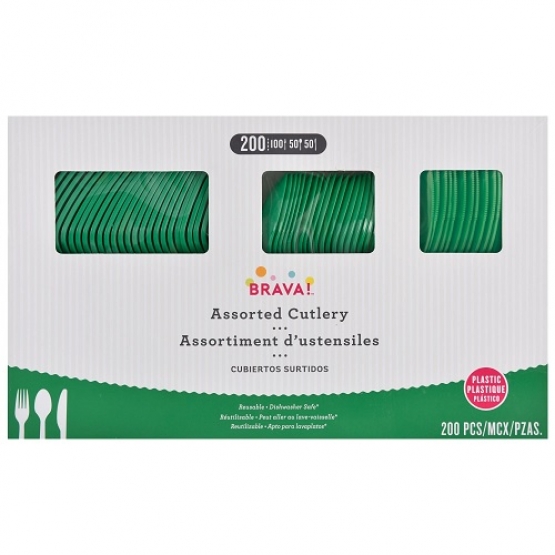 Assorted Cutlery - Premium - Plastic - 200 Count - Festive Green