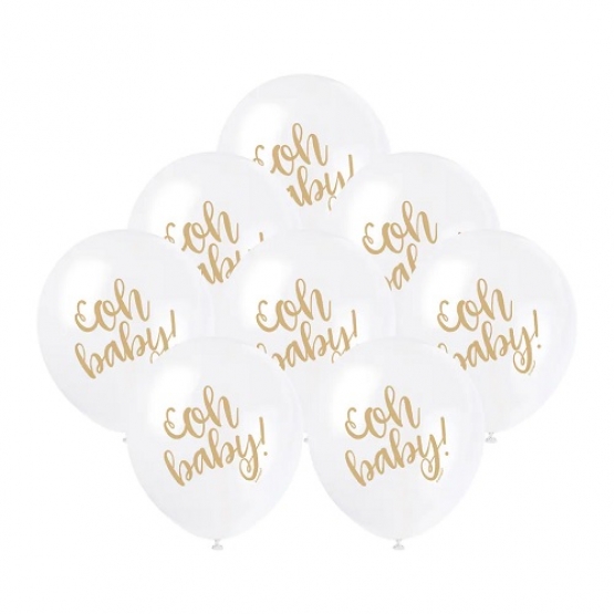Oh Baby! - Gold - Latex Balloons - 12" - 8 Pack - Without Helium Fill