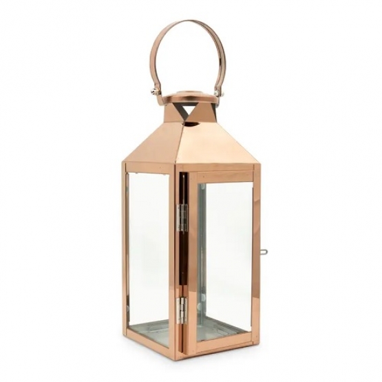 This Lantern is made of gorgeous Rose Gold Metal and Clear Glass Panes which makes this Decorative Lantern an Elegant way to Light the way for your Guests. Combine several of these versatile Lantern together as a Table Centrepiece or Floor Decoration!