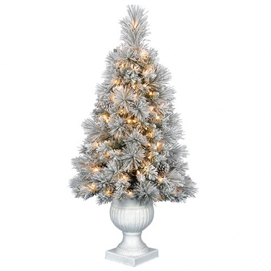 This Christmas Tree Decor is a must-have decoration for your next holiday celebrations. Its pot features a nice classic design, while its branches are coated with white frosting for a wintery effect. This decorative tree includes welcoming, warm white lightbulbs.