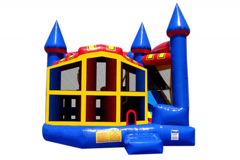 The 5-in-1 combo has a large interior jumping area which offers a basketball hoop and both log and pop-up obstacles. It also has a climb feature and a convenient exit slide for hours of active fun!
