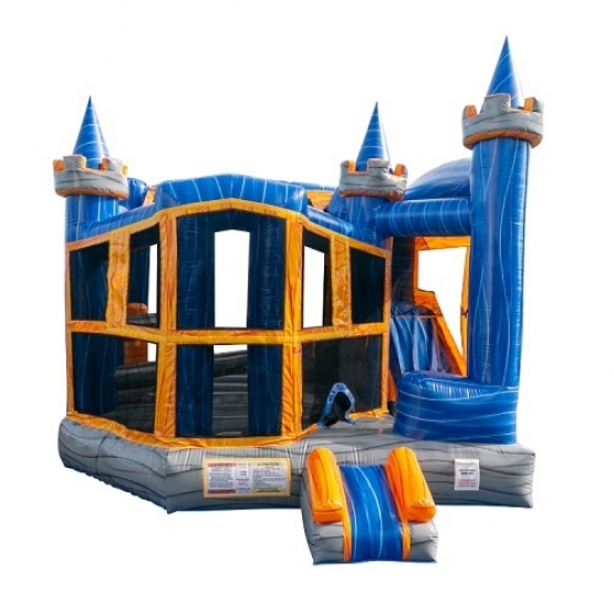 The 5-in-1 combo has a large interior jumping area which offers a basketball hoop and both log and pop-up obstacles. It also has a climb feature and a convenient exit slide for hours of active fun!
