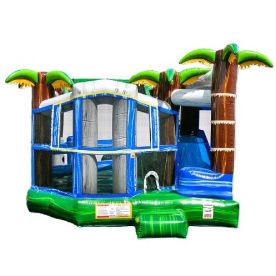 The 5-in-1 combo has a large interior jumping area which offers a basketball hoop and both log and pop-up obstacles. It also has a climb feature and a convenient exit slide for hours of active fun!